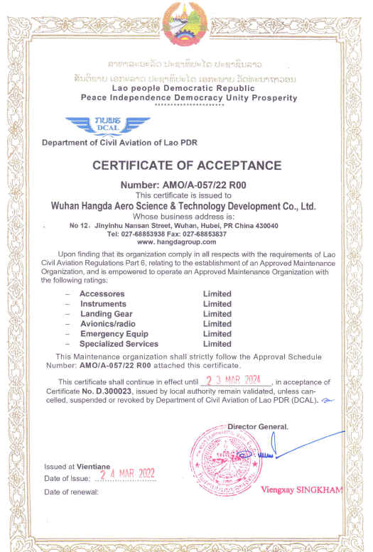2019年11月 徑河廠區獲得CAAC、FAA維修許可。